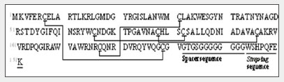 Fig. 1 Amino Acid Sequence and Predicted S-S Bonds of the Synthesized Human Lysozyme